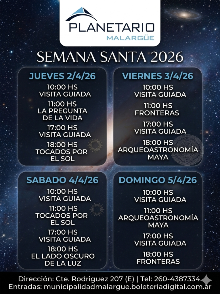 Solo para grupos de escolares y agencias de turismo, con turno previo al mail planetariodemalargue@gmail.com